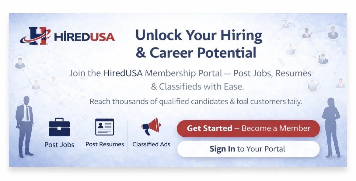 Post all your jobs and announcements and classified ads with HiredUSA.com. Reach tens of thousands of candidates and customers daily.